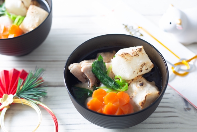 3. 鍋に水・かつお節・筑前煮の煮汁・もちを入れて煮たて、もちを溶かす。