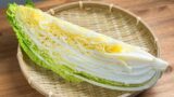 2. 白菜は葉と軸に分けたあと、葉は粗みじん切り、軸は1cm角に切る。
